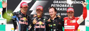 08/11/2010 0 O três principais candidatos ao títulos completaram o pódio no Brasil. O alemão Sebastian Vettel da Red Bull venceu o GP do Brasil e adiou a definição do campeonato de pilotos desta temporada da F1. A segunda colocação do seu companheiro, o australiano Mark Webber, ao menos garantiu para a equipe austríaca o título mundial de construtores com uma corrida de antecedência. O problema é que as posições dos pilotos da Red Bull ao finalizar a prova em Interlagos (SP) deram asas ao espanhol Fernando Alonso, da Ferrari. Alonso garantiu o terceiro lugar no pódio e graças à vitória de Vettel seguiu na liderança da competição e só depende dele na corrida no deserto de Abu Dhabi, no próximo domingo, para conseguir o seu tão tricampeonato. O circuito de Yas Marina será quem definirá o grande campeão da temporada 2010 da máxima categoria do automobilismo mundial. Alonso só precisa de um primeiro ou segundo lugar para conquistar o título sem se preocupar com os outros. A única coisa que ficou clara após o GP do Brasil é que a equipe Red Bull vai dar ordens de trocas de posições em Abu Dabi, caso isso sirva para impedir o tricampeonato de Fernando Alonso e coroar algum dos seus pilotos. Apesar das palavras do chefe da equipe Christian Horner na semana passada de que não haverá ´manipulação´ como a praticada pela Ferrari na metade do campeonato, ele mesmo tratou de desmentir sua declaração. “Se na última volta podemos ganhar o título, garantiremos o melhor resultado”, disse Horner no último domingo. Apesar da vitória no Brasil, Vettel sabe que suas chances não são muito boas. As do seu companheiro de equipe Mark Webber, sim. Aliás, o australiano merece com sobras o título desta temporada. Lutou sozinho como ele mesmo afirmou muitas vezes já que a Red Bull da prioridade ao piloto alemão, apesar de negar o fato. O mesmo já acontece na Ferrari onde Massa está condenado a ser um eterno ´segundão´. Conclusões à parte, para saber o desfecho real dessa história será necessário esperar mais uma semana. Classificação mundial F1 Pilotos (5 primeiros) 1 – Fernando Alonso (ESP/Ferrari) – 246 pontos 2 – Mark Webber (AUS/RBR – Renault) – 238 3 – Sebastian Vettel (ALE/RBR – Renault) – 231 4 – Lewis Hamilton (ING/McLaren -Mercedes) – 222 5 – Jenson Button (ING/McLaren – Mercedes) – 199 Classificação mundial F1 Construtores (5 primeiros) 1 – Red Bull Racing – 469 pontos (Campeão) 2 – McLaren Mercedes – 421 3 – Ferrari – 389 4 – Mercedes GP – 202 5 – Renault – 145